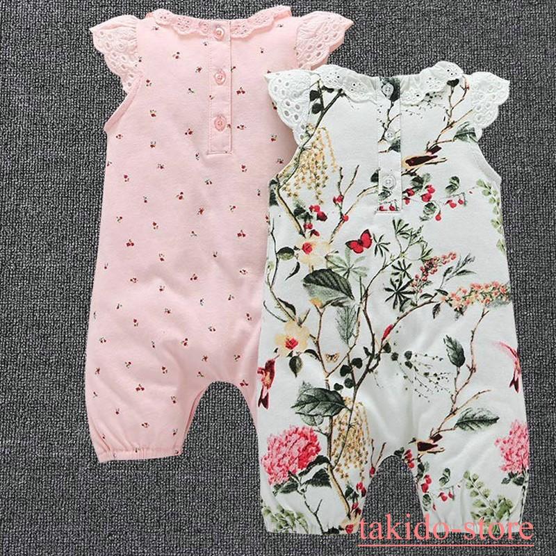 子供服 ロンパース 花柄ロンパース ベビー服 女の子 半袖 キッズ 幼稚園 保育園 70 80 90 100 出産祝い 春 夏 新生児 つなぎ カバーオール Sunny Chic 子供服 ファッション通販サイト